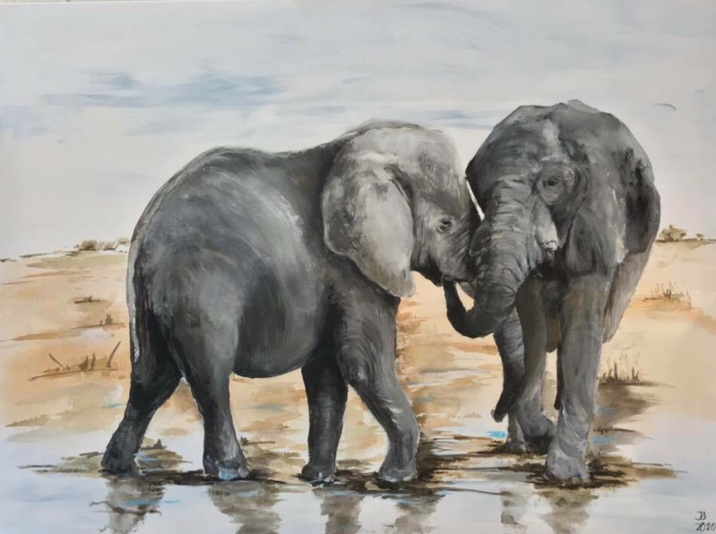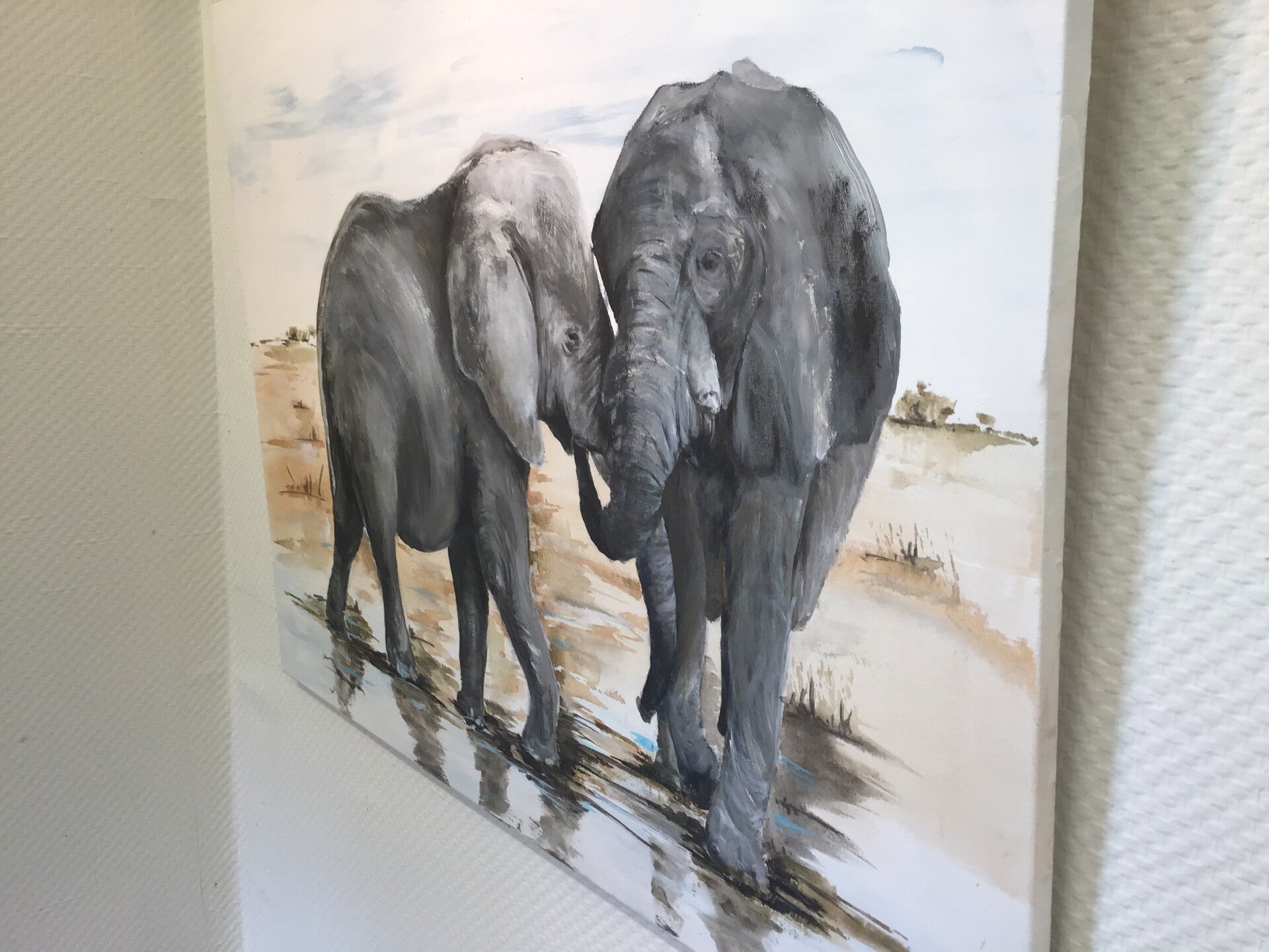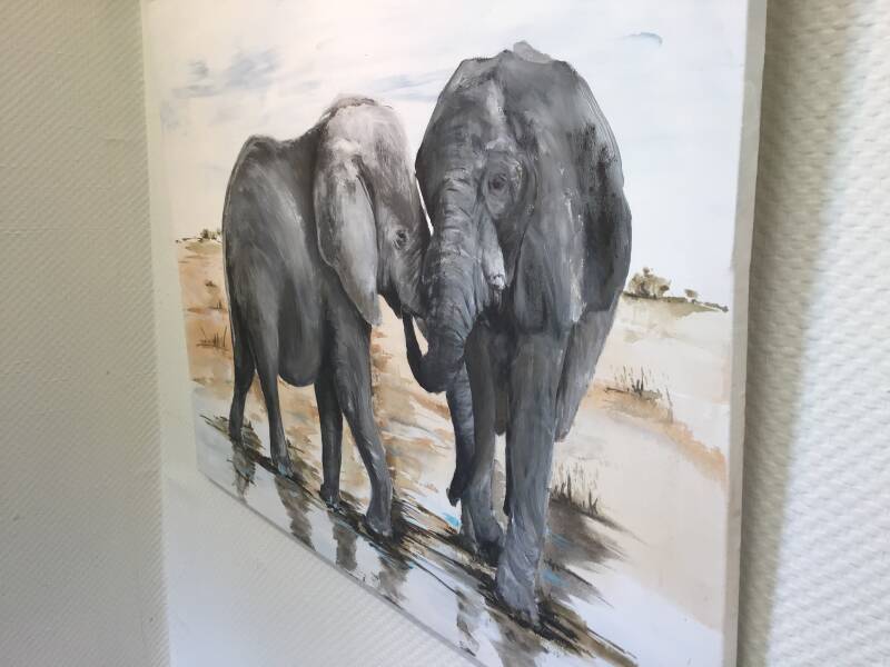 De doeken kunnen ook iets van elkaar gehangen worden omdat ze aan de zijkanten doorgeschilderd zijn.